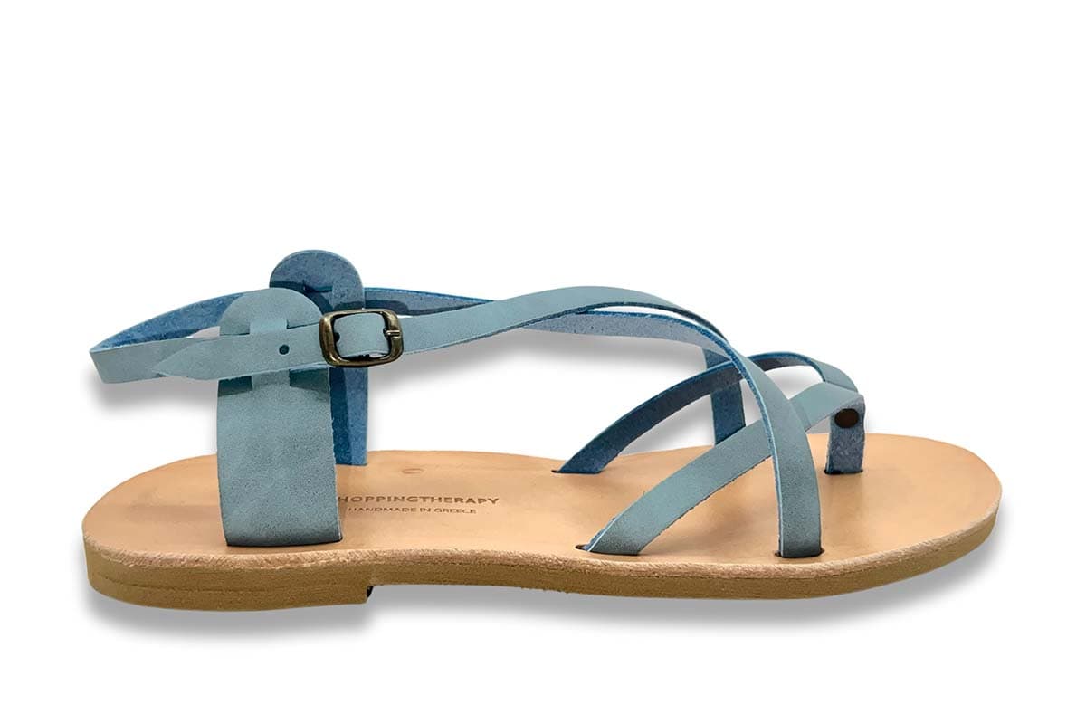 Sandal in nubuck, brushed soft leather Insole : full grain leather Outsole: rubber Fastener: side buckle on strap